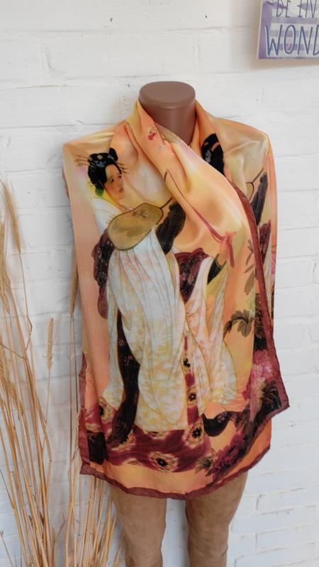 Шелковый шарф, ручной шов. Новый. Размер 54*164