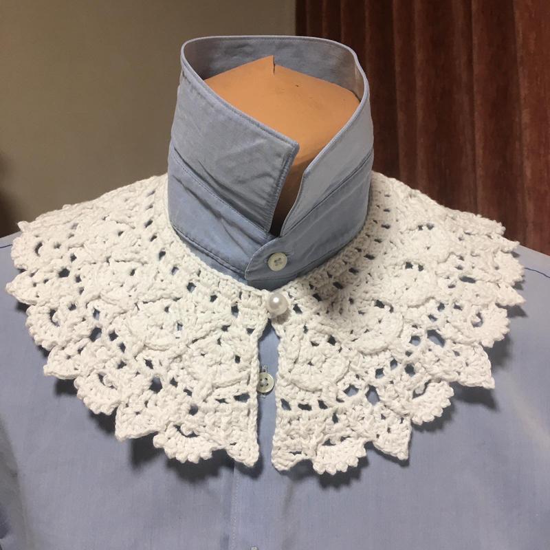 Воротничок вязанный крючком Рельефным рисунком Застежка пуговка Хлопок 100%