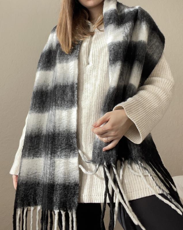 Актуальний обʼємний шарф у клітинку, довжина - 220 см ширина - 36 см