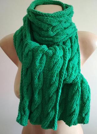 Цей шарф може стати для вас найулюбленішою річчю у вашому гардеробі.Ваш однотонний верхній одяг просто розквітне на фоні цієї неймовірної зелені.А в осінньо-зимові дні він без сумніву підійматиме вам настрій.І оточуючим!Суперово виглядає з чорним довгим пуховиком. Плетений вручну з дорогої італійської пряжі 100% котон