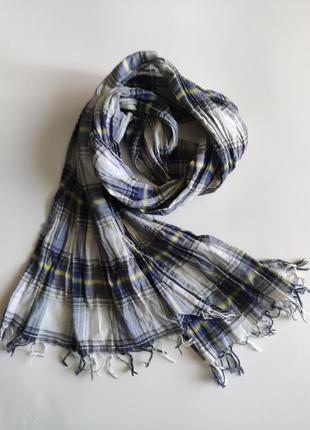 Тонкий летний шарф с кистями 165-40 см белый в клетку Шарф выполнен из тонкой гладкой хб ткани, жатый Цвет - белый в синюю клетку. Размер: Длина - 165 см , ширина - 40 см, кисти - 10 см. Состояние - идеальное никаких дефектов. Состав - 100% хб. Доставка: НП, Укрпочта, MEEST *** Товар отправляю по полной оплате. Благодарю за понимание!