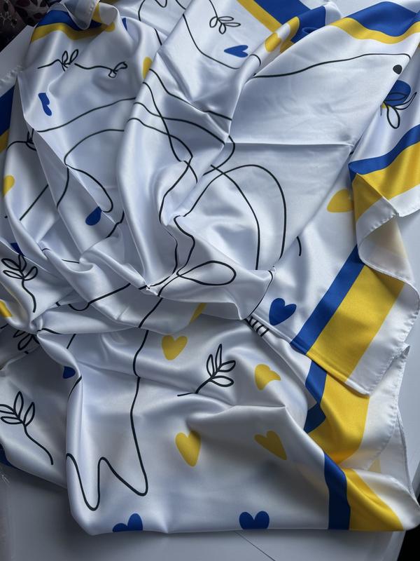 хустка 💯 атлас с набивным патриотическим принтом; качество 🔥,з головы не сскользит, приятная на ощупь; размер 95*95 см. производитель Турция.