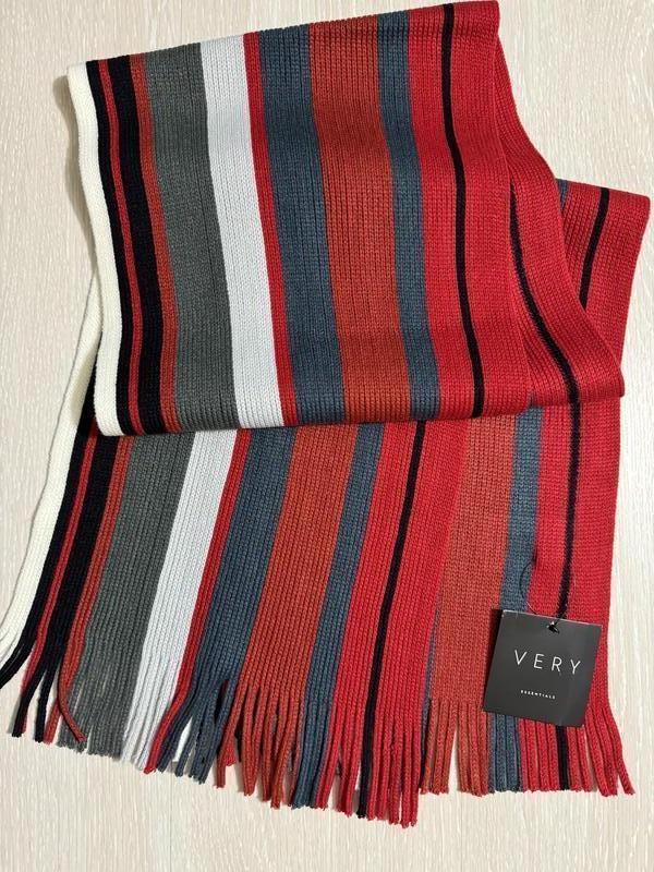 Такой аксессуар, как шарф, способный подчеркнуть индивидуальный стиль женщины и придать облику особого шарма. Именно поэтому такое изделие обязательно должно быть в гардеробе каждой женщины и мужчины. Предлагаю вашему вниманию очень красивый и стильный вязаный шарф в разноцветную полоску. Фирма VERY. Состав отсутствует...нитка очень мягенькая и приятная к телу. Длина c бахромой -178 см, ширина-28 см. Внимание!!! При покупке три и более моих любых вещей-бесплатная доставка посылки Новой почтой. Удачных покупок.