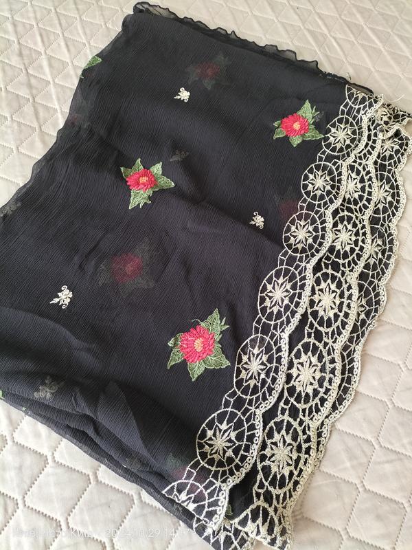 Стан идеален. Ткань напоминает шифон, красивые вышивка и кружево.