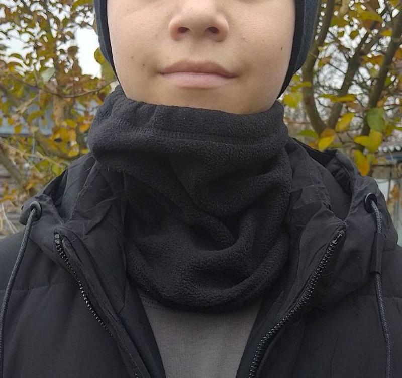 Предлагаю теплый и удобный хомут флис полар на горлышке. В наличии черный, можно разных размеров. Данный вариант 25см на 25см по одному краю имеет легкую резинку, которую через петлю при желании можно затянуть