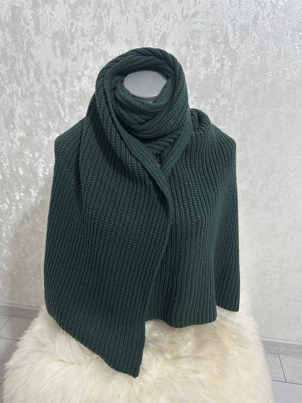 В’язаний шарф/палантин, бренд Jacoueline de Yong. Шерстяна нитка. Цвет - изумрудный, как на первом фото. Длина 230 см, ширина 50 см. Можно завязывать разными способами, длина и ширина позволяет. Стан идеален. Эффектов нет. Катишок нема.