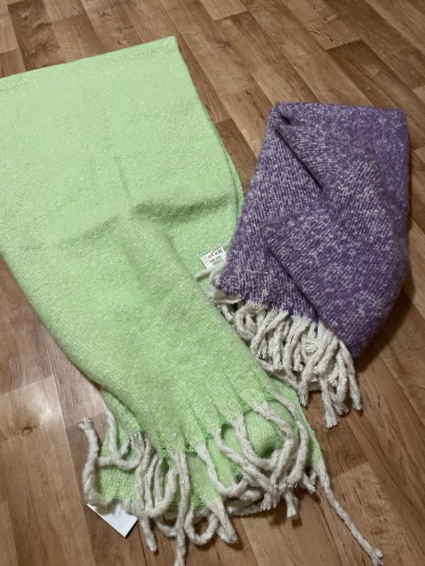 Шарфи по 180 грн. В салатовом и фиолетовых оттенках. Длинные, теплые, очень приятные и мягкие на ощупь. Новые.