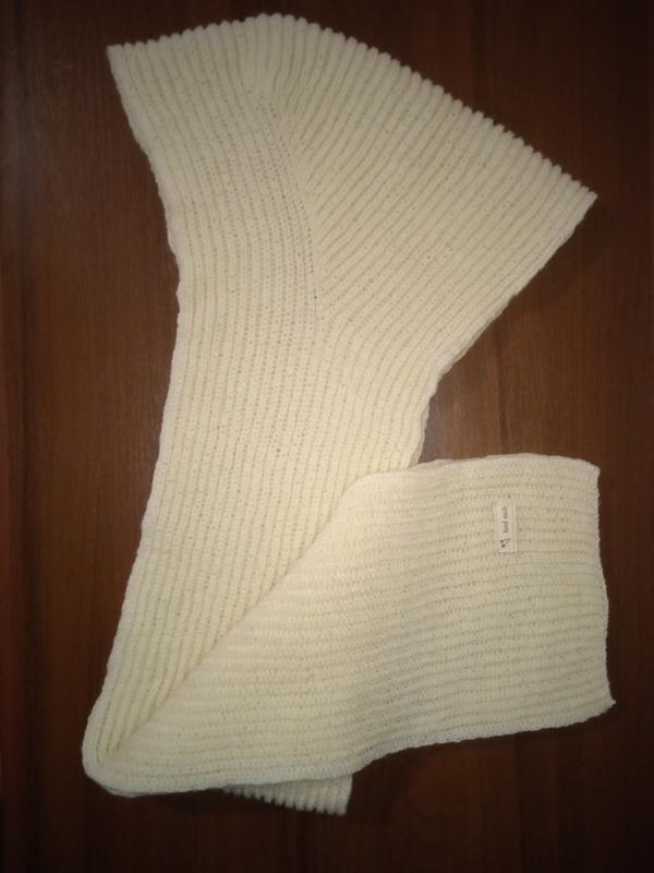 Шарф-капюшон. Ручная работа. Пряжа качественная, теплая, 50 % шерсть. Полотно не очень плотное, такое воздушное, просвечивает. Цвет молочный.