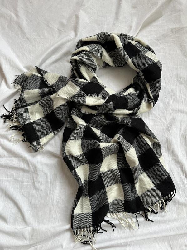 Большой тепленький шарф в клетку Купила давно в бершке или страдивари,не памячусь потому что бирку отрезана🥲 Ширина 80 см Длина 196 см
