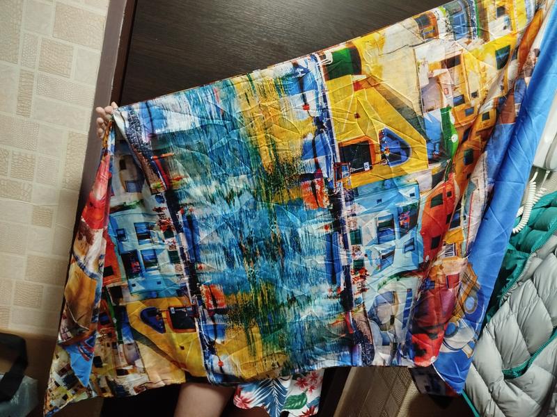 разноцветный яркий принт .длина 188 ширина 70 состояние новое 100 шелк оплата и почта любые