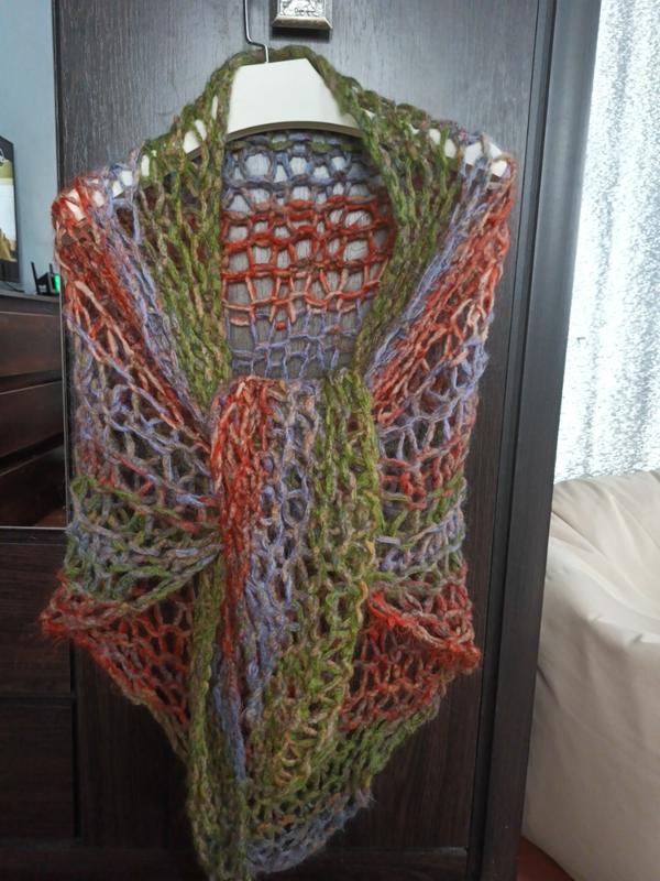 треугольный платок, шарф снуд, красивое сочетание цветов. Ручная работа, нить мохер+ шерсть. теплый и красивый элемент гардероба. можно носить, накинув на верхнюю одежду, закрутить, как снуд, или накинуть в прохладный летний вечер.