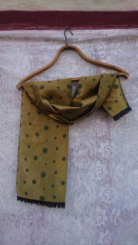 Шарфик двусторонний, то есть из двух частей сшит. Замеры: длина-115см, ширина-19см. Для убедительности, воспользуйтесь безопасной оплатой.