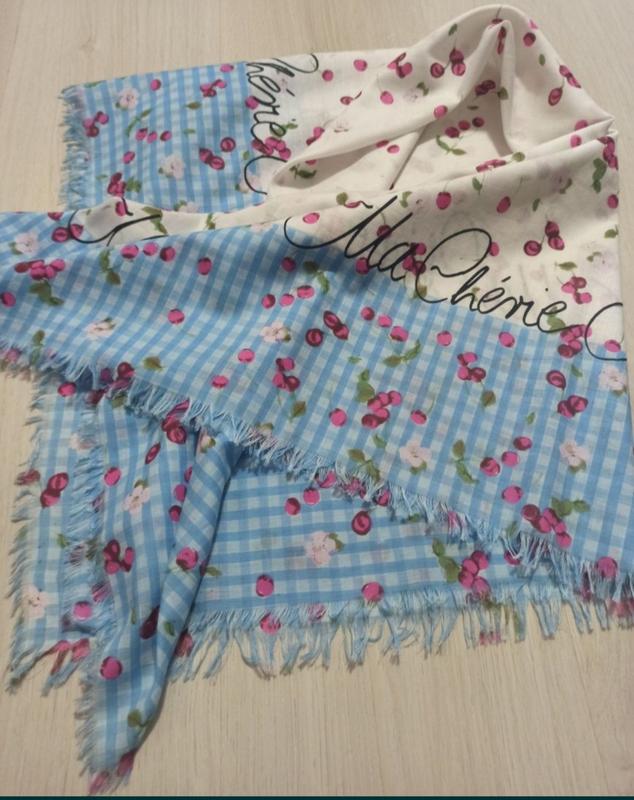 Сodello красивый хлопковый платок принт вишенки края не обработаны, состояние отличное, ФОТО на СЕБЕ НЕ ДЕЛАЮ, ориентируйтесь пожалуйста по замерам длина 102см, ширина 98см,,замеры без учёта кисточек,не тянется