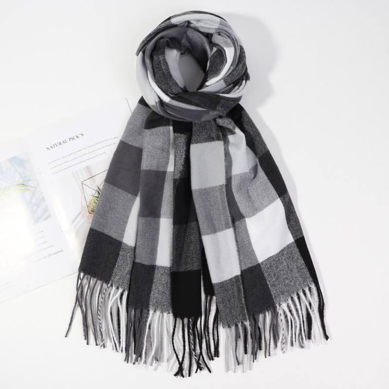 Шарф-палантин в крупную клеточку. Серый с черным ✨Очень мягкий и приятный к телу, не колятся. ✨Размер 180x66 см (без дредов)