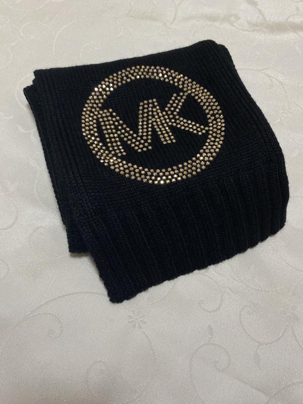 Жіночий чорний шарф з золотистим декором логотипу бренду MICHAEL KORS. Довжина 180 см; Ширина 21 см.
