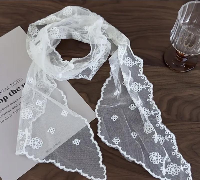 Елегантний білий мереживний шарф з квітковим візерунком - ідеальний для аксесуарів для волосся, модної пов'язки та стильного одягу на шиї, стильний одяг на шиї | Квітковий мереживний дизайн | Делікатна тканина з сітки Без бирки 💗💗💗