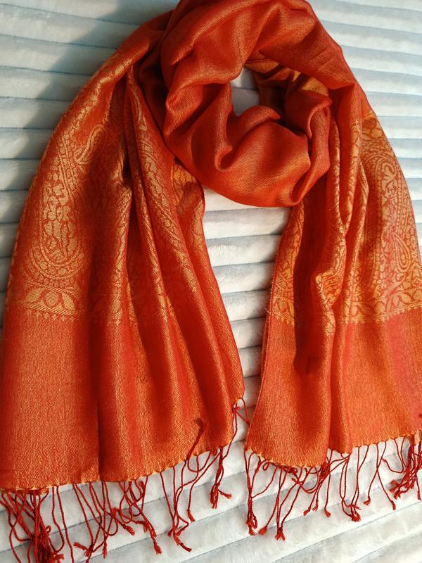 Женский плантин, пашмина с шелком, оранжевого цвета, яркий, приятный на ощупь, размер 196x66