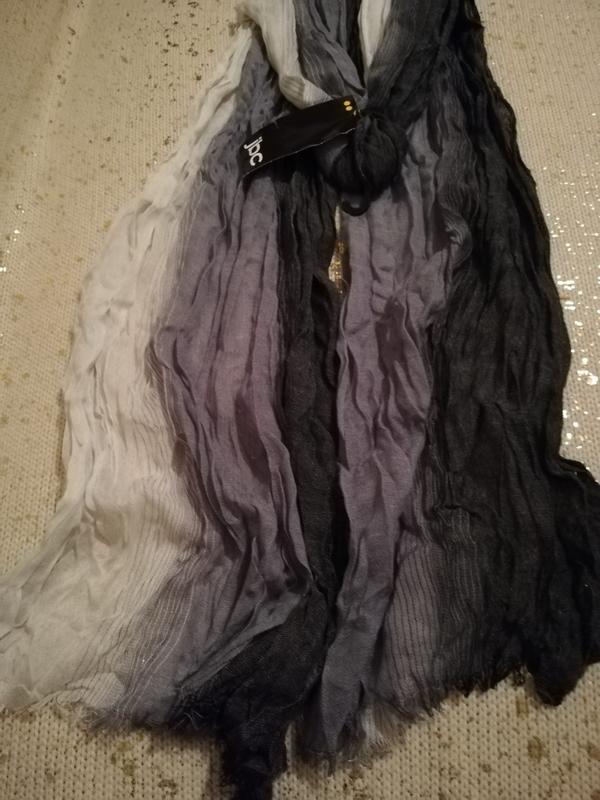 Фирменные шарфики 2 шт.от JBC. ОРИГИНАЛ. JBC - это бельгийский бренд одежды. НЮАНС! В комплекте 2 шарфика (новые с бирками,но с механическими повреждениями). Шарфики сделаны с эффектом ЖАТКИ ( по-этому нюансы не бросаются в глаза если правильно уложить данный аксессуар) 1. Шарфик с эффектом омбре (от серого меланжевого до белого.) Ширина - примерно 62см Длина - примерно 110см Дефект на фото № 3 2.Шарфик сочетает в себе классическую клетку и поперечные полосочки (синий,серый,голубой,белый) Ширина - примерно 65см Длина - - примерно 110см Есть затяжки. Дополнительная информация - по запросу. Состав: 100% п/эстер Доставка: Отправка после оплаты на карту Приватбанка или Альфа-банка