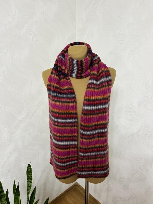 Зробіть холодні дні яскравішими за допомогою яскравого,смугастого шарфа у святкових червоних,рожевих та жовтих кольорах, який ідеально підходить для додавання веселого контрасту до зимових шарів одягу. Розмір 205/23 см Ш1036