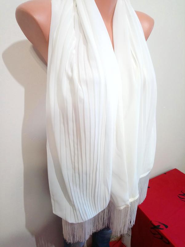 Шарф белый двойной с бахромой, можно носить как накидку . Длина 145 см и 14 см бахрома , ширина 49 см . Дорогие гости моего магазинчика! Я торгую новыми вещами , а так же одеждой в идеальном состоянии! Цены Вас порадуют!