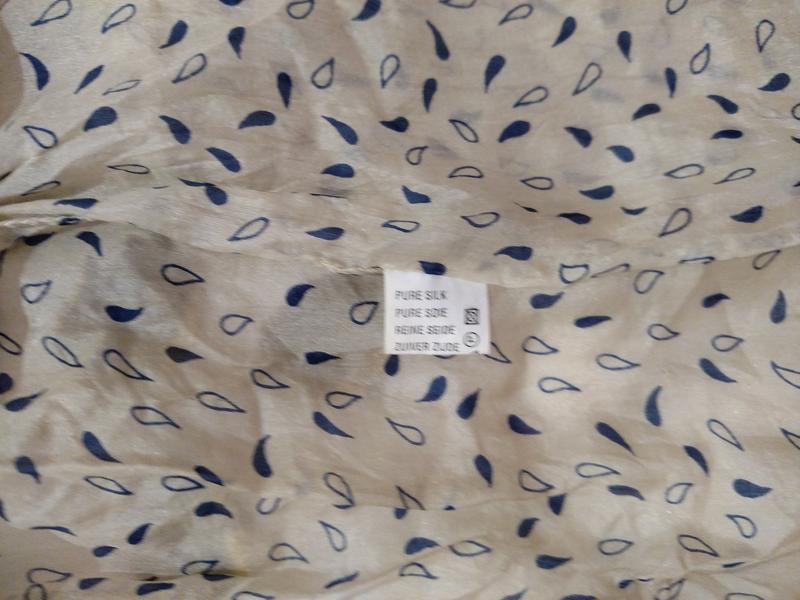 Очень нежный шарф шелк,пастель с синими запятыми,ширина 32см,длина 150см