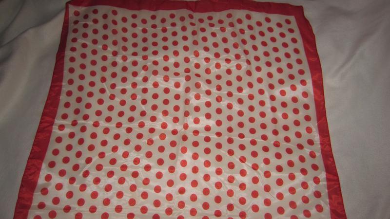 платок белого цвета в красный горох.полиэстер.размер 100*85см
