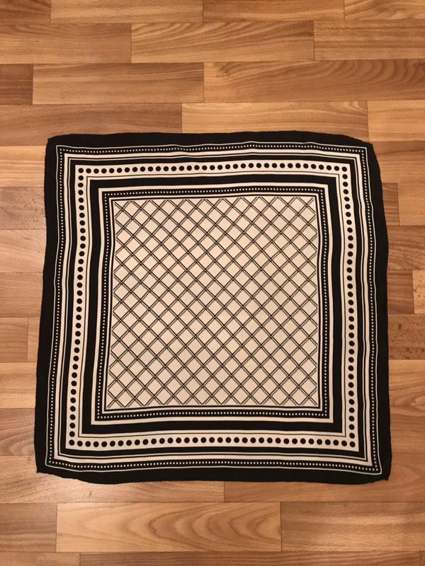 Очень красивый и стильный дизайн платка Состояние идеальное, без дефектов Шёлк, шов роуль Размер 53*53