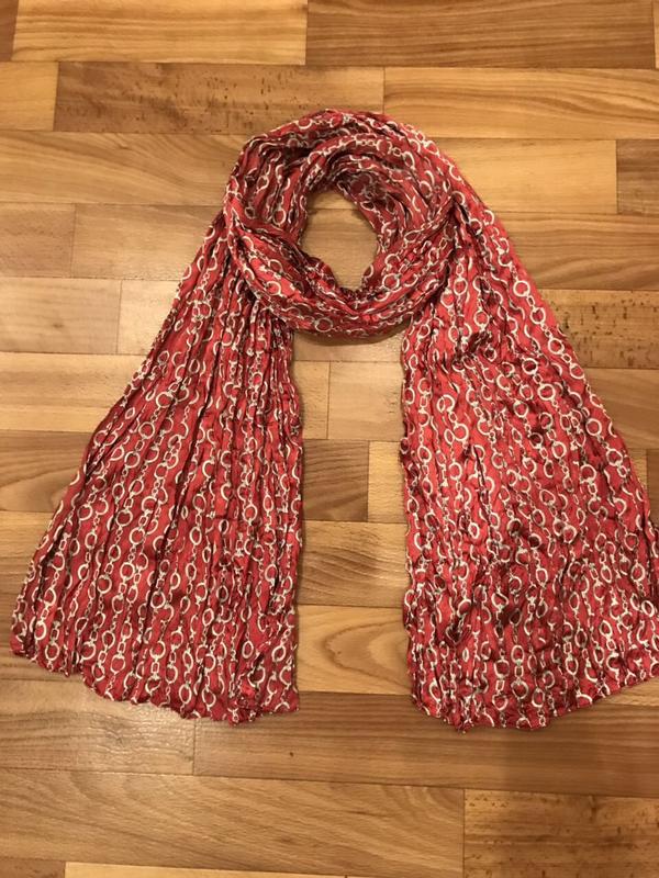 Красивый платок в стиле Chanel Материал очень качественный-жатка(неутюжиться) Очень стильно смотриться на теле Размер 53*158 Состояние идеальное, без дефектов Бирка срезана