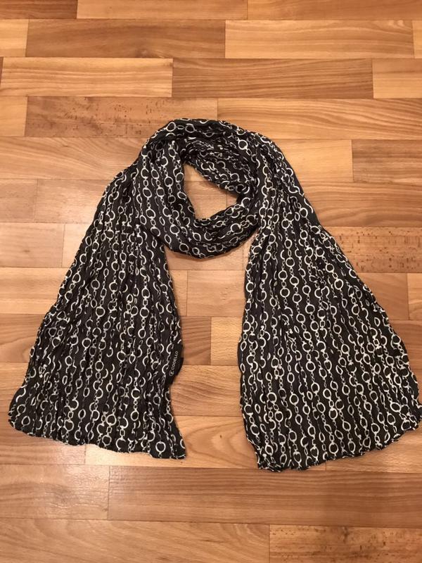 Красивый шарф в стиле Chanel извесного бренда. Состояние очень хорошее,есть заводской дефект шва,на носку невлияет и абсолютно ничего не видно. Есть бирка, размер 53*158 Материал-жатка