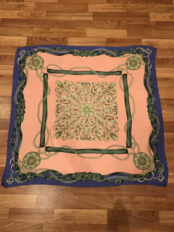 Очень красивый и стильный дизайн платка Есть несколько стетиков на синем, в носке невидно, в цене учтено. Размер 84*89 Очень красиво смотриться на теле