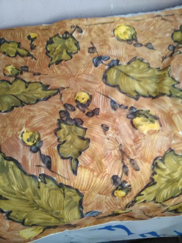 Шёлковый платок "листья дуба". Без дефектов. Бирочка срезана. Шов роуль. Размер 66*65см