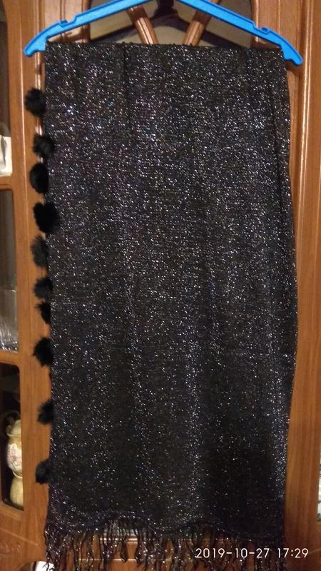 Красивий, довгий шарф з люрексовою ниткою, хутряними помпонами, загальний стан ідеальний, колір чорний.