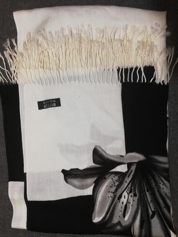 Красивый шарфик. Цвет черный и белый. Ширина 72.длинна 186 см