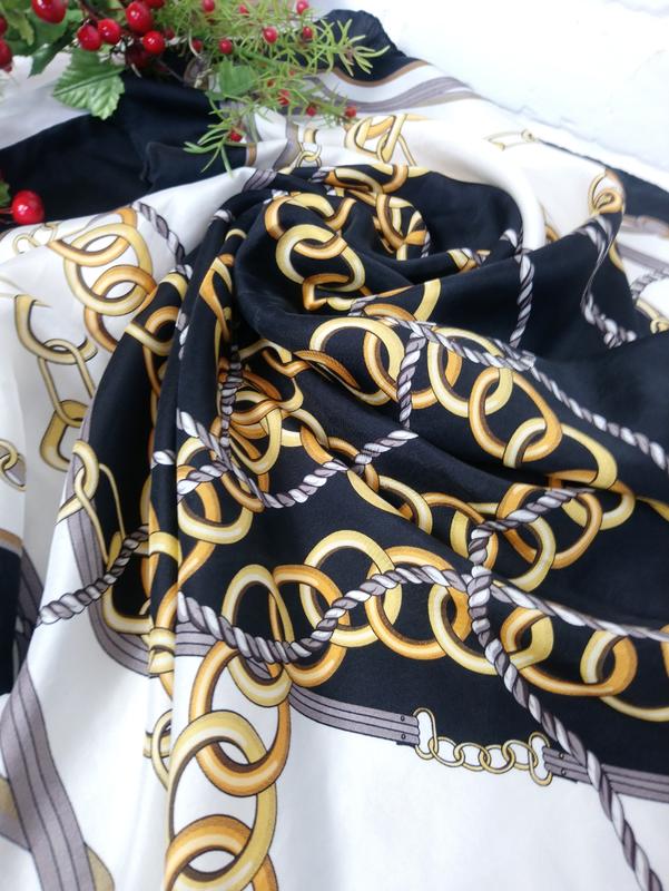 Прекрасный брендовый платок из натурального шелка с очень оригинальным дизайном. Шов роуль. Бирка в наличии. Размер 89*84 см Состав: натуральный шелк