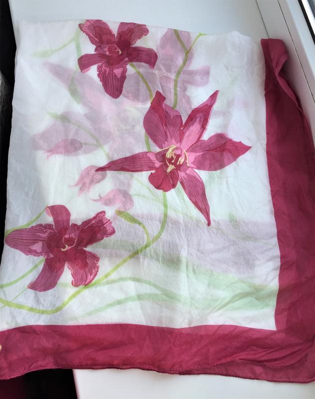 Красивый шелковый платок в цветочный принт Jours Heureux 100% шелк размер 86 х 84 см