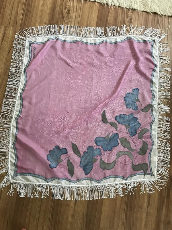 Стиль - батик и роспись по шёлку.Чистый шелк. Размер {без бахромы}: 86х84. Длинна бахромы-8см.