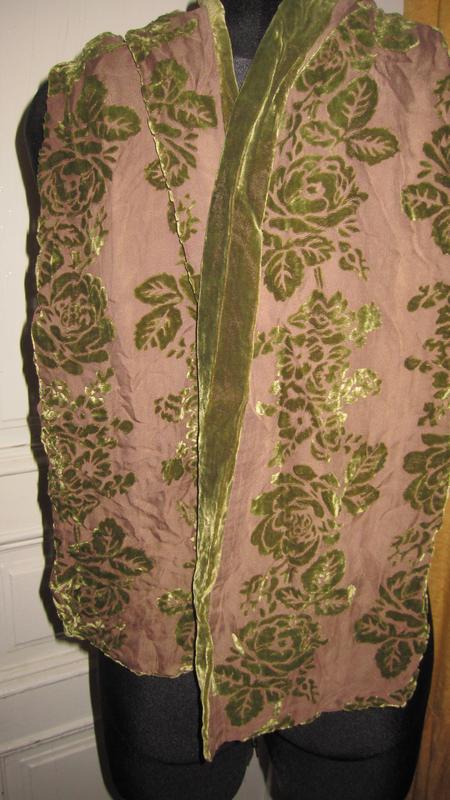 шарф защитного цвета.шелк с бархатом.размер 24*148см