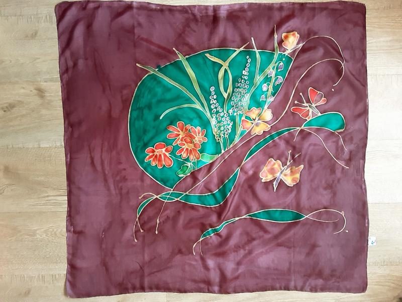 платок,100% натуральный шелк,ручная роспись по шелку,90х90см