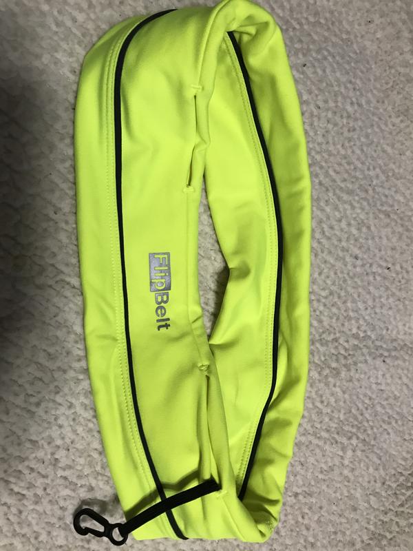 Flip Belt;длина 36 см;ширина 7,5 см,ярко-лимонного цвета со светоотражающий фирмой с карабином на резинке.