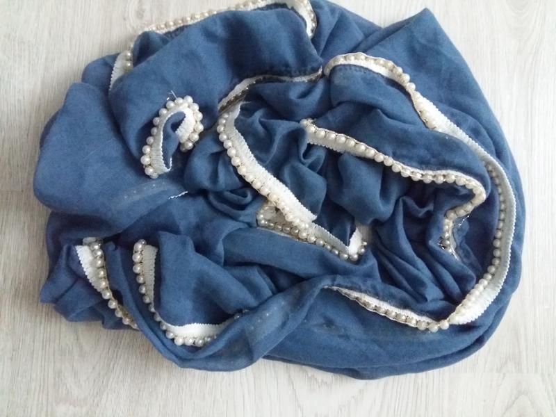 Невероятно шикарнейший шарф,обрамление жемчужинами, смотрится в реале очень красиво,на фото передать не возможно, длинный ,эксклюзив, второго такого нет натур. ткань,смотрите другие мои объявления