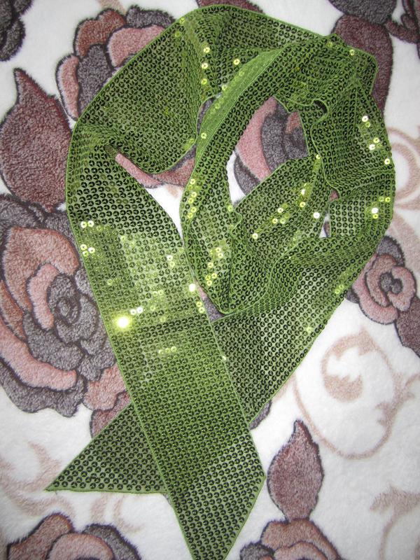 Празднечный шарфик зелёного цвета. Ширина 8,5см, длинна 191см.
