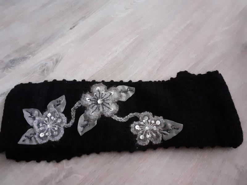 теплый шарф с аппликацией ширина 19см,длина174см