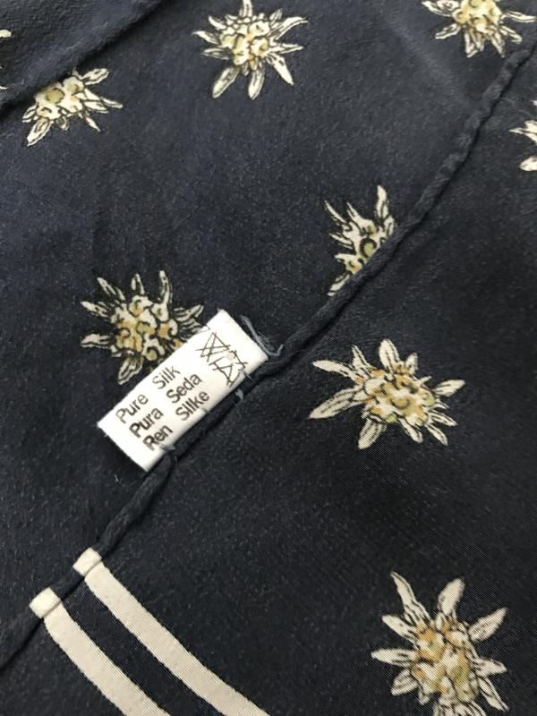 Шелковый винтажные шарфик темно-синего цвета с мелкими цветочками. Шёлк высочайшего качества! Замеры:длина-120 см, ширина-31 см. Есть небольшая дырочка-см.последнее фото. Ее совсем не видео, только на просвет. -учтено в цене изделия.