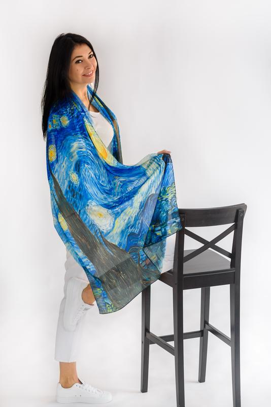 Розмір 180*70 70%віскоза30%шовк Принт репродукція Ван Гог Зоряна ніч Якість ідеальна!