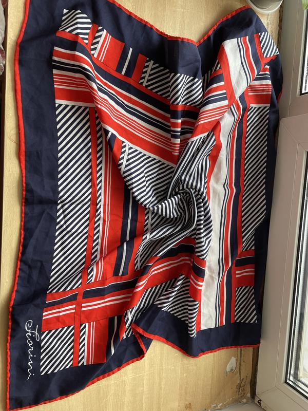 Подписной шарф -fiorini К сожалению есть затяжки и растрепалась подшивка, на общий вид не влияет Размер 75*75