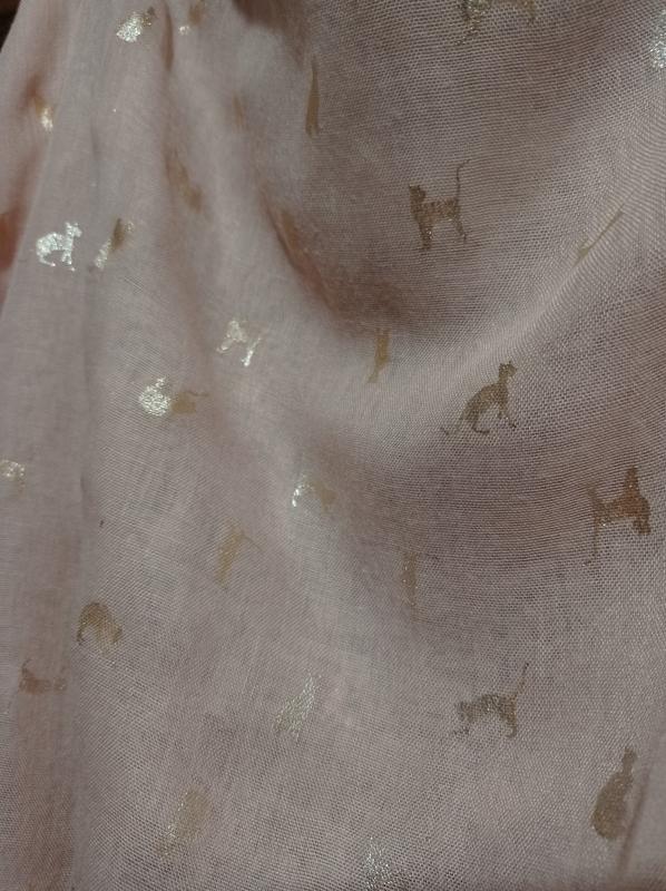 легкий шарф. сезон весна-літо. розмір 68*180. склад 35% котон, 65% поліестер. ніжний рожевий пудровий колір. є малесенька дирочка 3мм