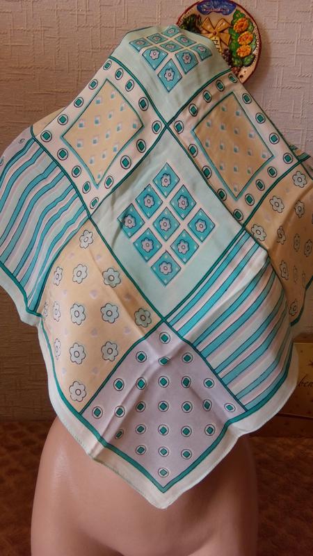 Шелковый шейный платок. Шов машинный. Цвета от бирюзы до голубого. Размер 52х50см.
