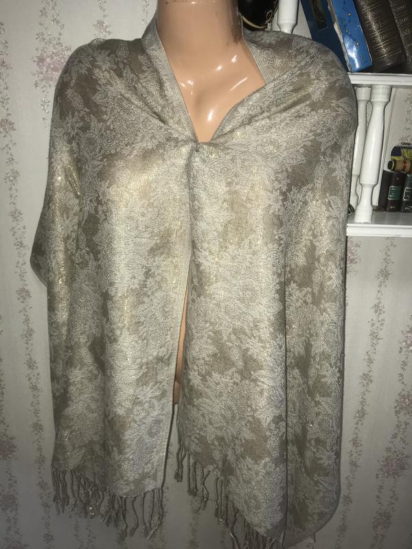 Палантин шаль шарф Легкий, приятный телу ( не кусается) Материал: 90% вискоза + 10% люрекр Размер : длина 100 ( с бахромой) Ширина 56 см