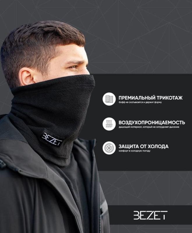 Buff BEZET Fleece'21 Размер: универсальный Материал: Флис Сезон: Осень/Зима Баф сделан из микрофлиса, температура комфорта до -30 градусов. Хорошо тянется и приятно прилегает к коже. Ширина бафа регулируется эластичной резинкой с фиксатором. Фирменная бирка BEZET спереди.