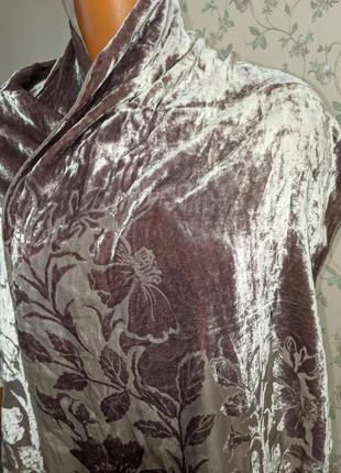 шелк натуральный.,Очень красивый цвет, Серебро-жирень.Средина однотонная,боки с узором, очень классный и цвет.